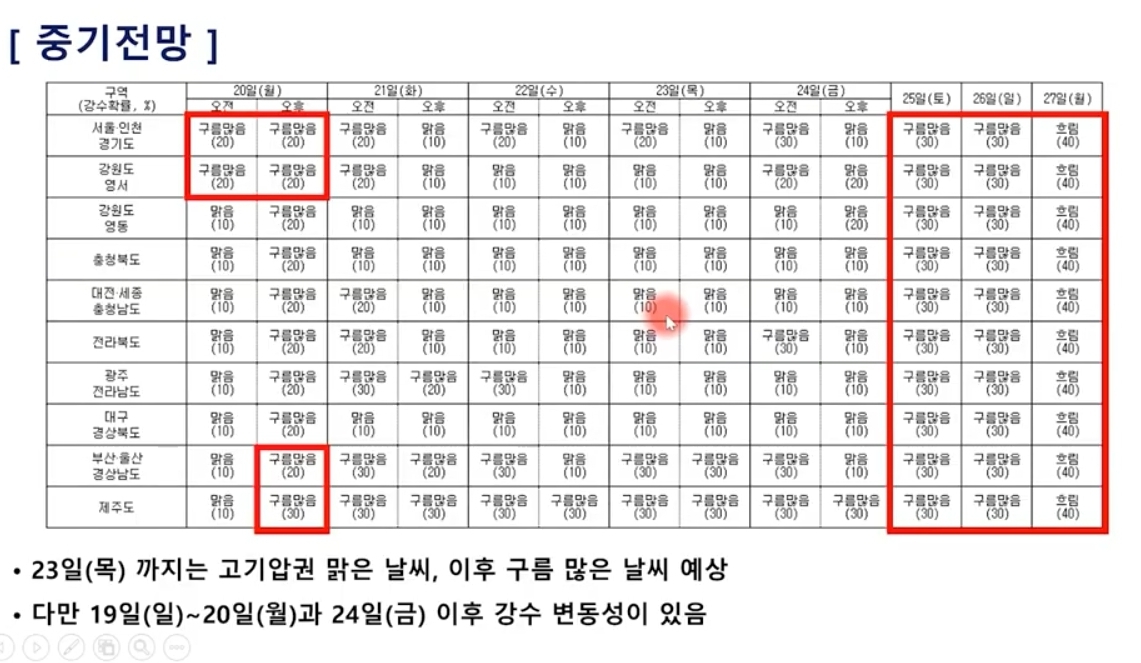 2024.5.19(일)~5.27(월) 일기예보: 평년보다 약간 더운 맑은 날씨 본문