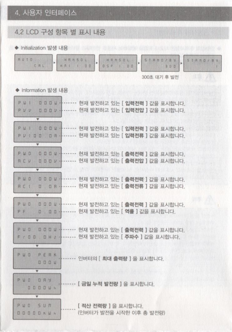 LCD창 표시내용, 상태표시 LED