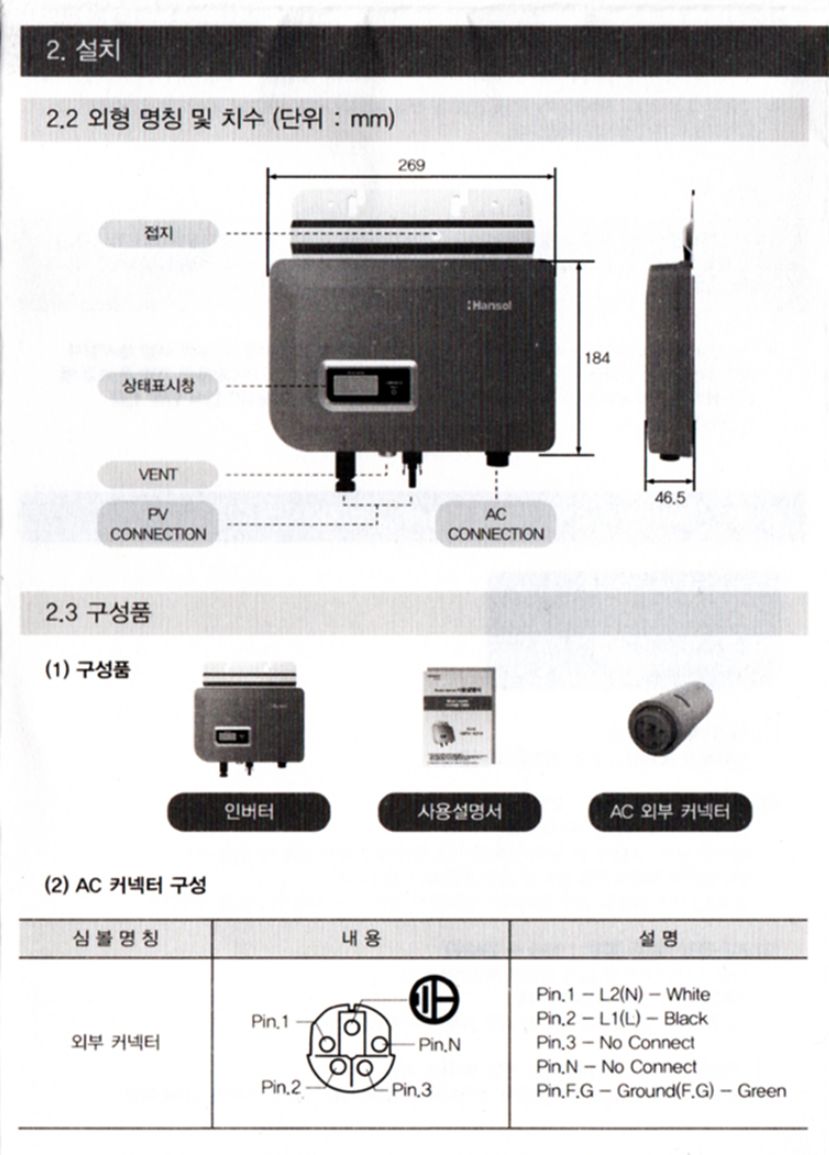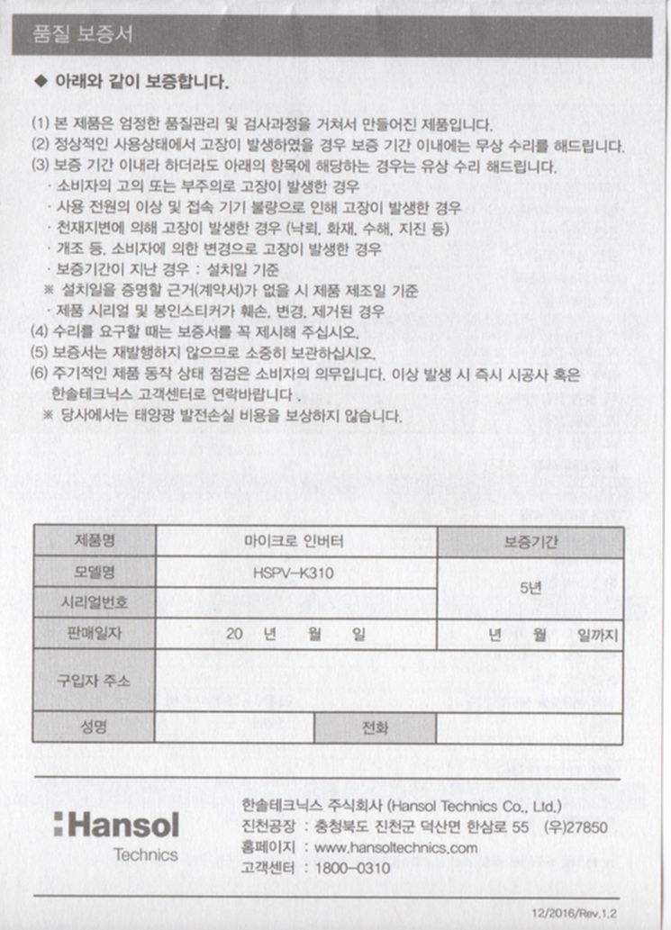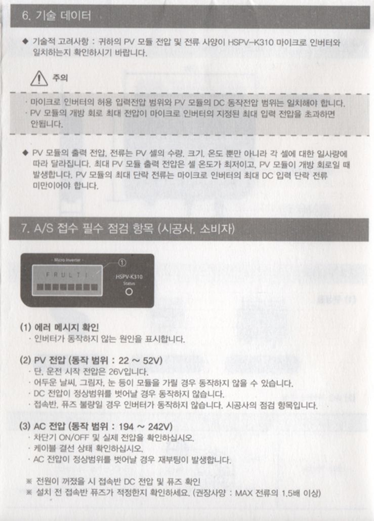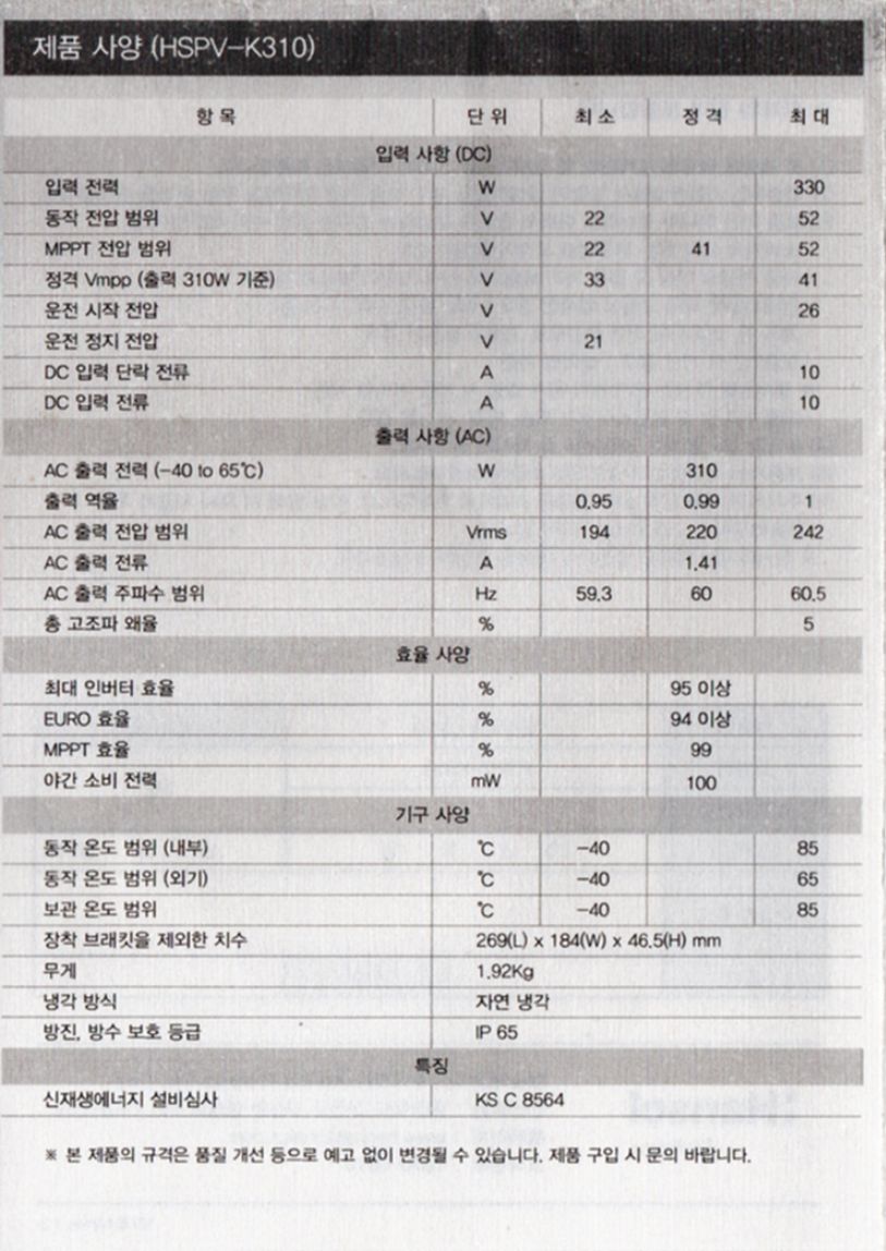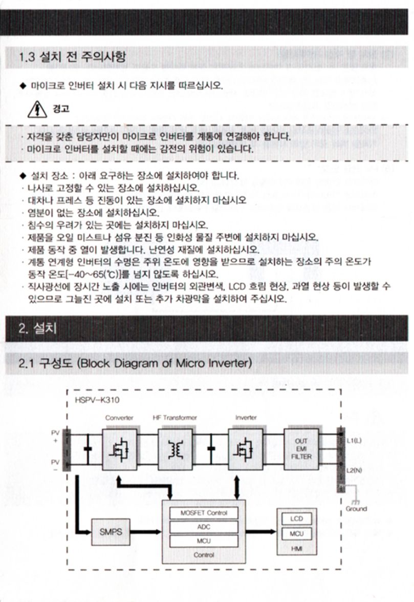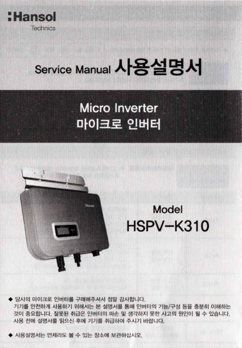 한솔테크닉스 미니태양광 마이크로인버터 HSPV-K310 설명서 본문