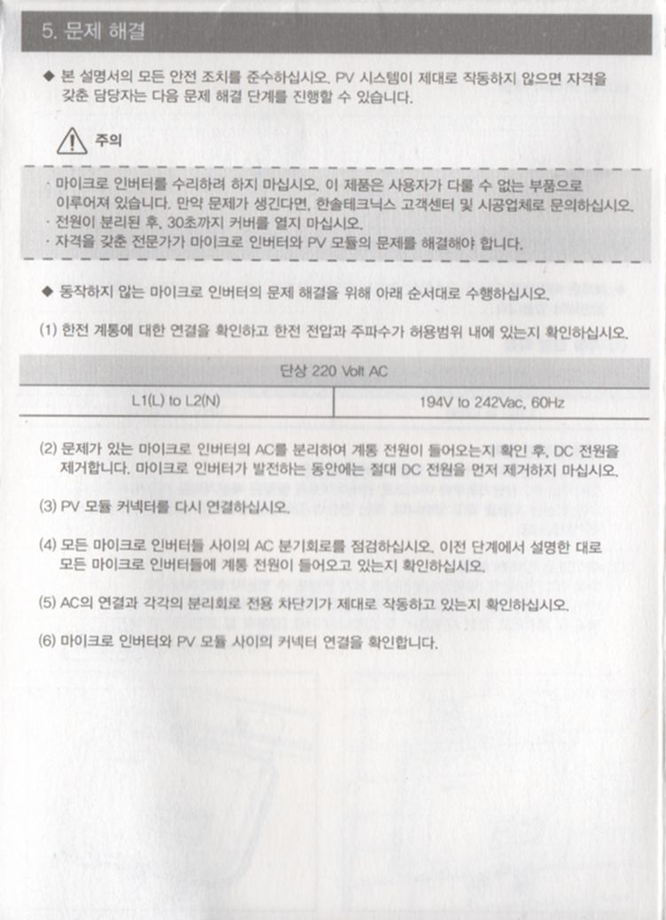 한솔테크닉스 미니태양광 마이크로인버터 HSPV-K310 설명서 본문