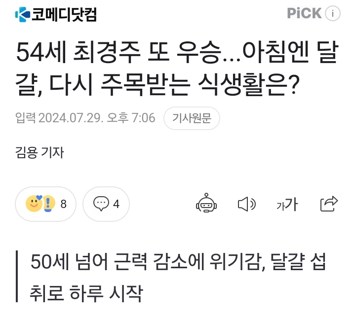 54세 최경주 또 우승...아침엔 달걀, 다시 주목받는 식생활은?