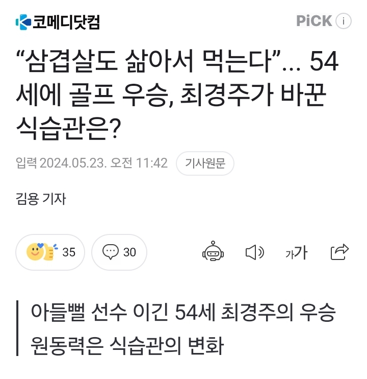 “삼겹살도 삶아서 먹는다”... 54세에 골프 우승, 최경주가 바꾼 식습관은?