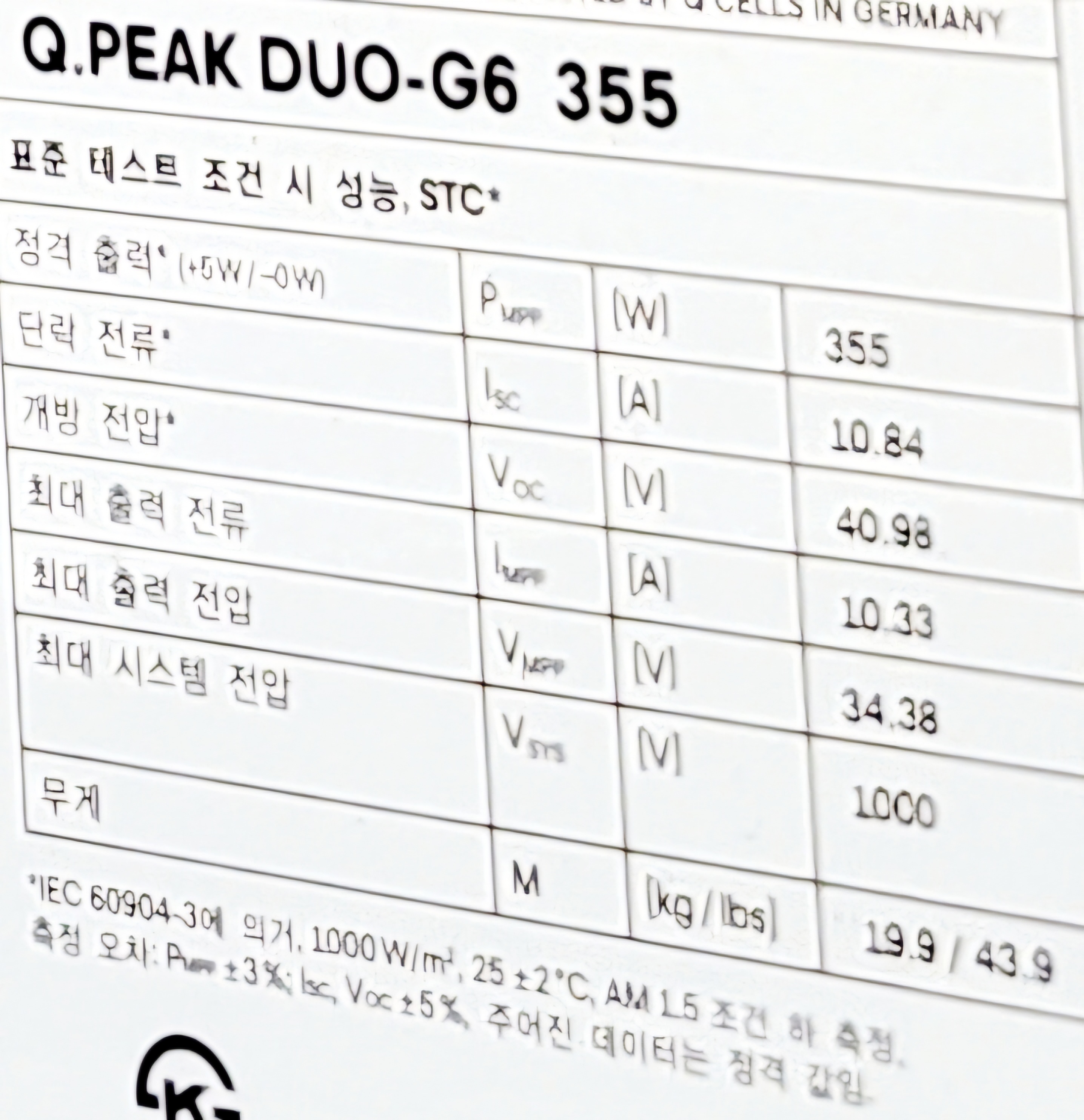 패널이 노후화되면 전압과 전류가 조금 낮아질 수 있다지만 패널 수명은 인버터수명의 몇 배가 될 만큼 길다고 하고, 어쨌든 기본은 사양표니까.