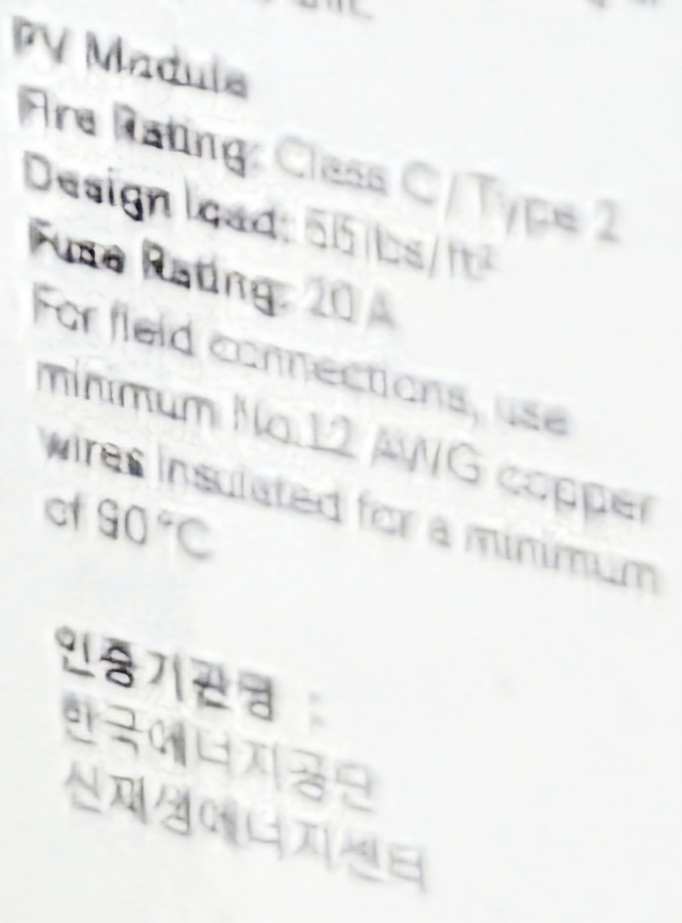 KS 규격명 결정질 실리콘 태양광발전 모듈