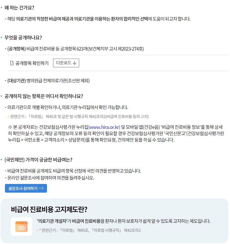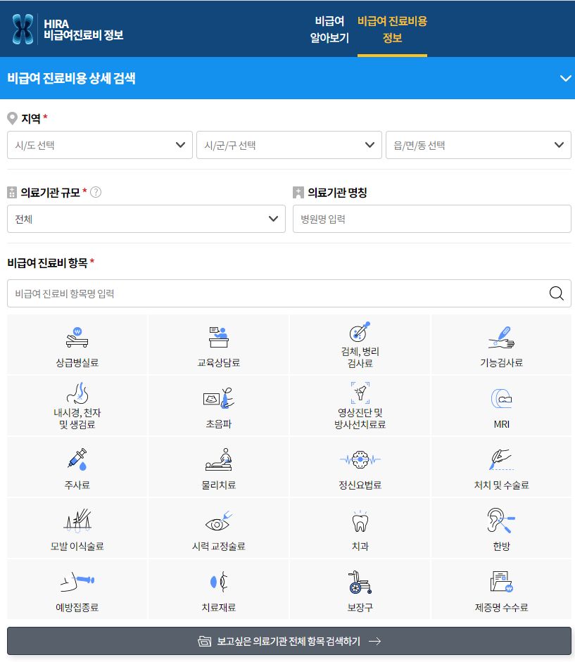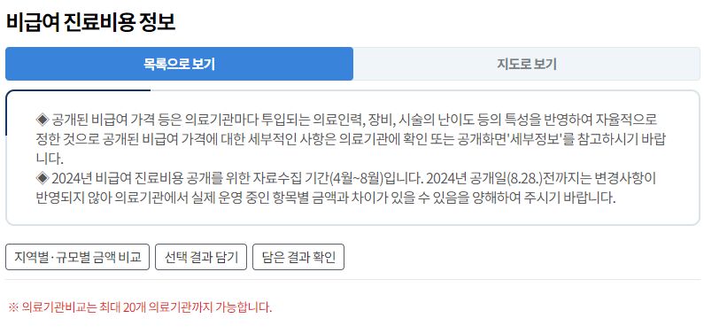 비급여진료비용정보 알아보기