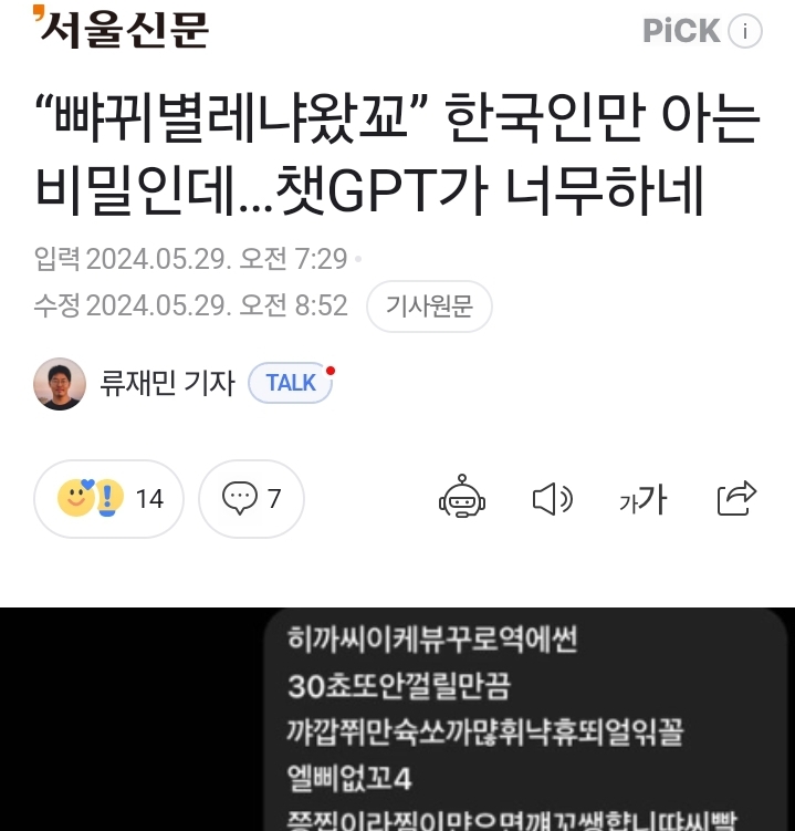 “뺘뀌별레냐왔꾜” 한국인만 아는 비밀인데…챗GPT가 너무하네
