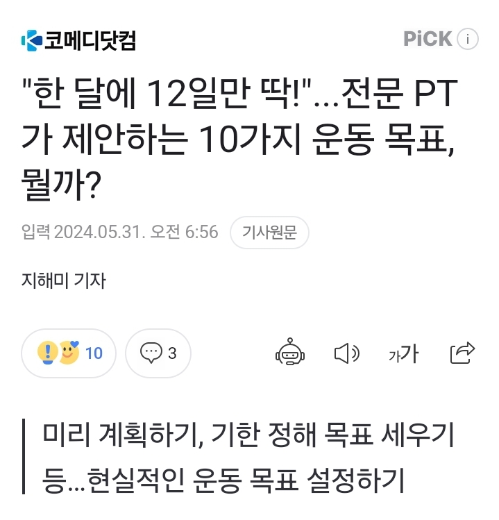 "한 달에 12일만 딱!"...전문 PT가 제안하는 10가지 운동 목표, 뭘까?