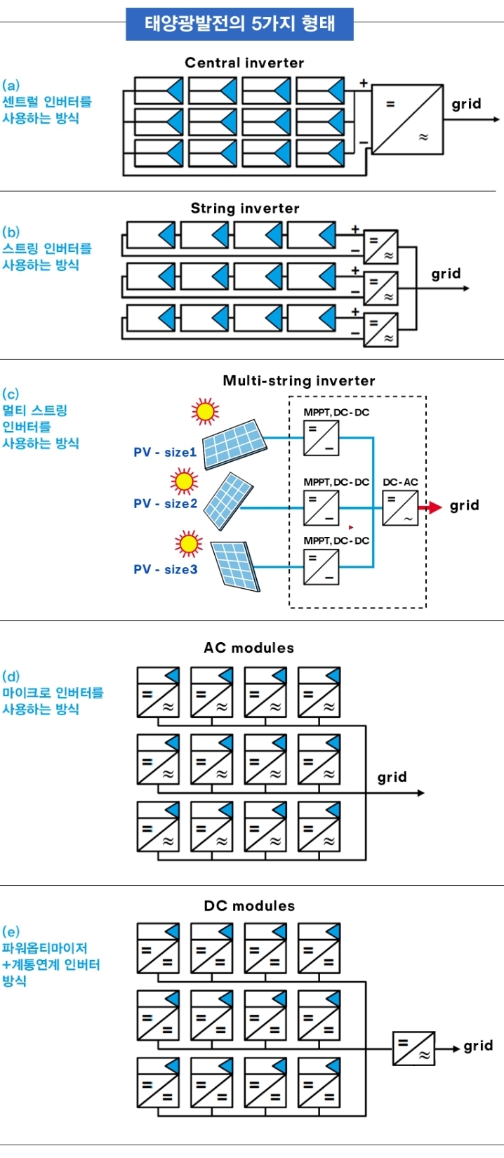 5가지 형태의 태양광 인버터