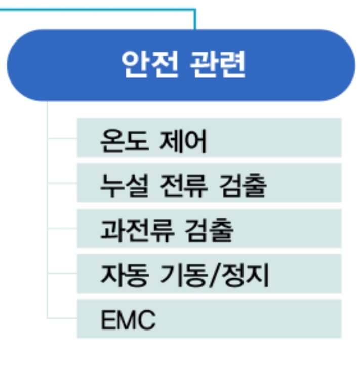 안전 관련 기능은 태양광 인버터의 내부 온도 또는 특정 부분(스위칭 소자 또는 방열판)의 온도가 안전 범위를 벗어나는 경우 출력 전력을 감소시키거나(Derating) 정지해야 한다. 또한, 입력과 출력에서 (......) (그 외 운전정지해야 하는 경우를 열거)