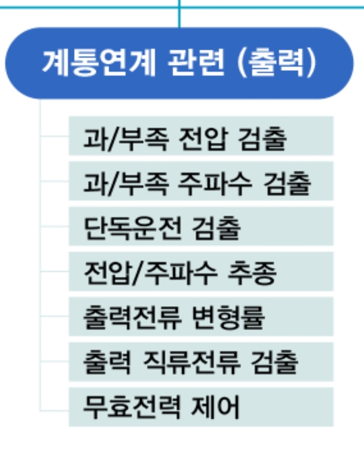 전력계통은 일반적으로 정상 범위의 전압과 주파수를 유지하지만 이상 상황(급격한 부하 증가, 급격한 전력 공급의 감소 등)이나, 정전 또는 사고에 의해 전압과 주파수가 정상 범위를 벗어나는 상황이 발생하는 경우 태양광 인버터는 정해진 시간 내에 정지해야 한다. 그리고 단독운전(Islanding, 정전이 발생하였는데 분산전원에 의해 전원이 공급되는 현상)이 발생하게 되면, 단독운전을 검출하여 정지해야 한다. 전력계통의 안정도 향상을 위해서는 전력계통의 조건에 따라 전력회사의 요구에 의해 무효전력(Reactive power)을 만드는 기능을 수행해야 한다. 그리고 전력계통에 연계하여 운전할 때 전류 고조파를 5%미만으로 발생(출력 전류 변형률) 시켜야 한다.