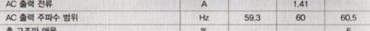 그리고 KS규격을 따라 생산된 국내 계통연계형 마이크로인버터 3개 제품의 AC출력 주파수 범위