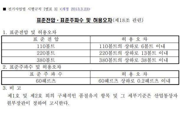우리나라 전기사업법 시행규칙에 명시된 한국전력 전기품질 +@ 본문