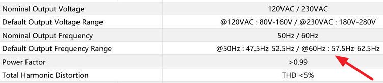 직구 등으로 들어오는 중국산 마이크로인버터제품들의 AC출력 주파수 범위의 예: