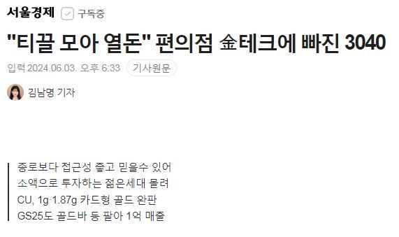 "티끌 모아 열돈" 편의점 金테크에 빠진 3040