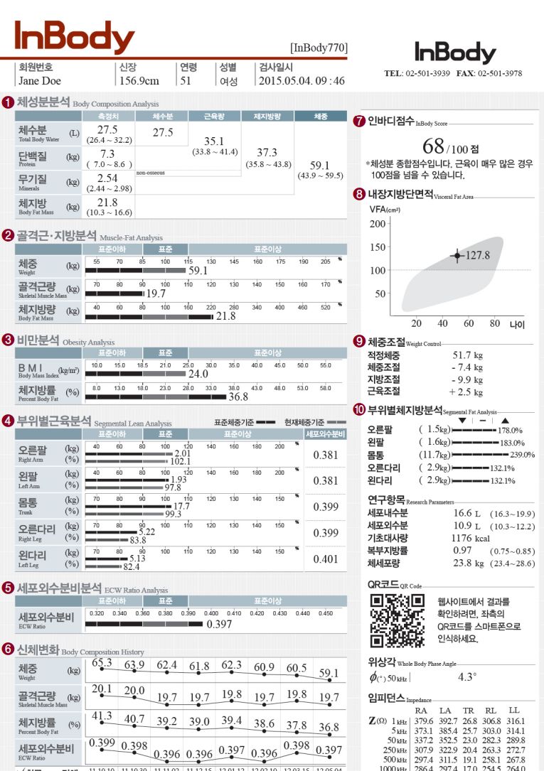 인바디 결과지 예시 (출처: 인바디 카탈로그)