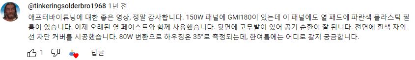 * 위 영상에서 리뷰어가 사용한 생산전력측정계