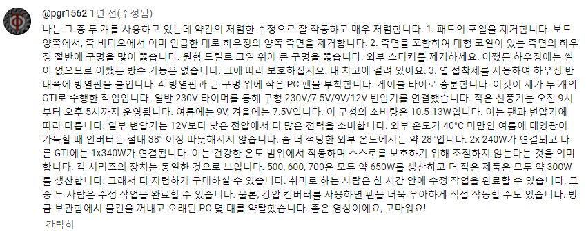 어떤 가정용 마이크로인버터 제품(GMI)리뷰 유튜브 본문