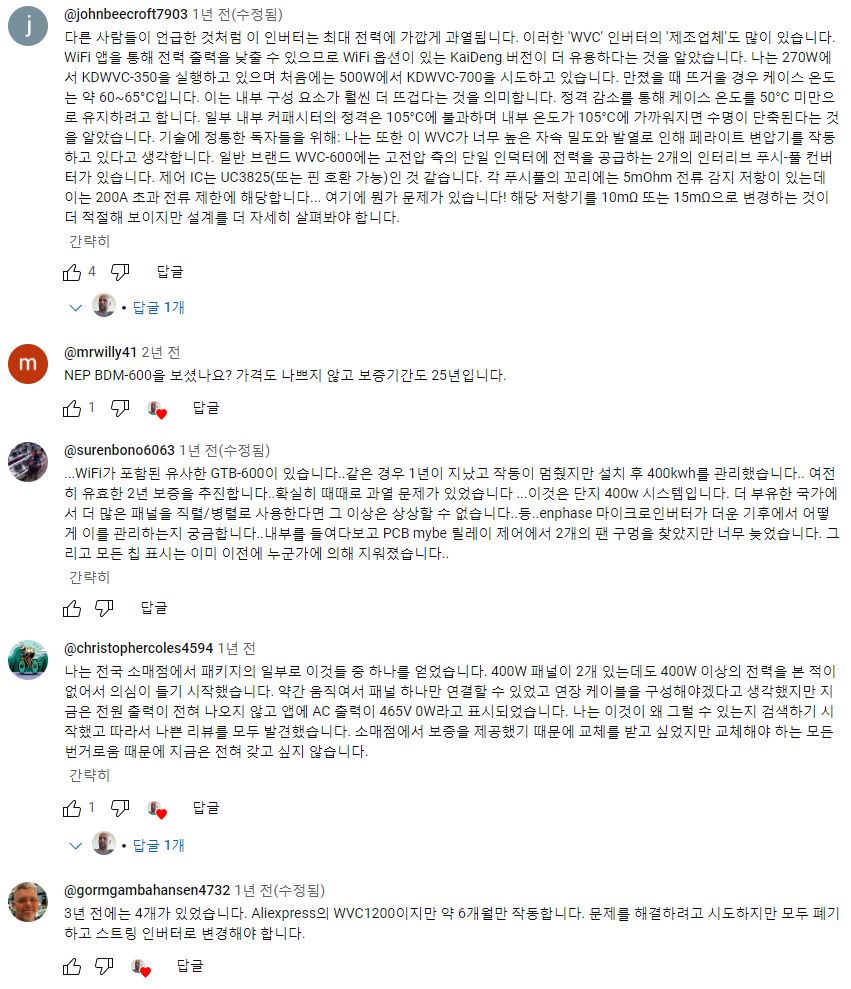WVC- 시리즈 마이크로인버터를 사지 말라는 어느 유튜버 /:/ 미국 유럽 유튜버들이 홈DIY용으로 구입한 중국산 마이크로인버터 평판 등 조금 본문