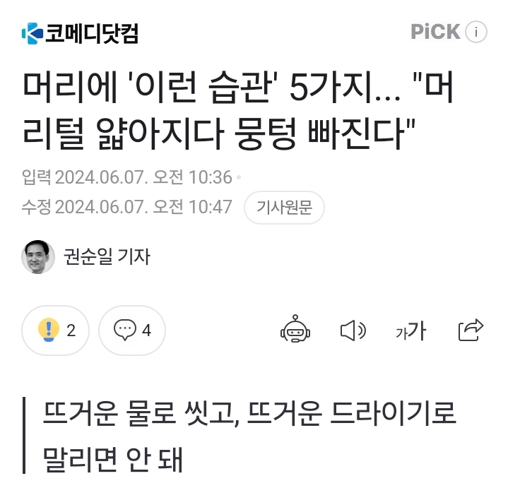 머리카락을 학대하면 머리가 빠진다 (기사) 본문