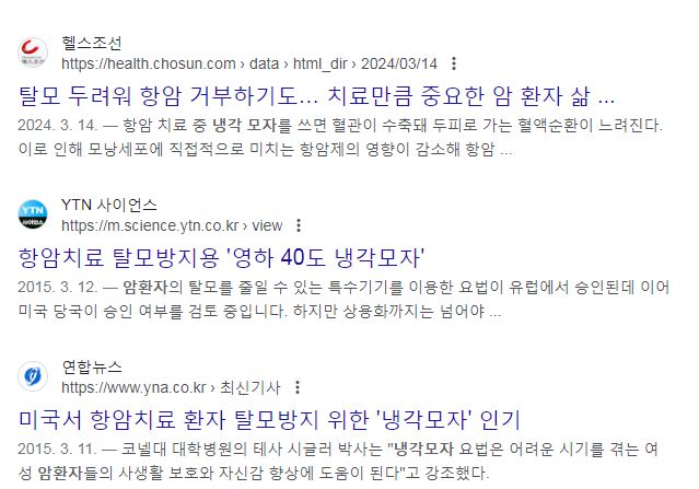 하지만 항암주사를 맞는 동안 그걸 쓰고 있으면, 혈액순환이 저해되는 만큼 항암제가 머리카락을 만드는 세포쪽에는 덜 가서, 사용하지 않은 경우보다 탈모가 적다고 합니다.
