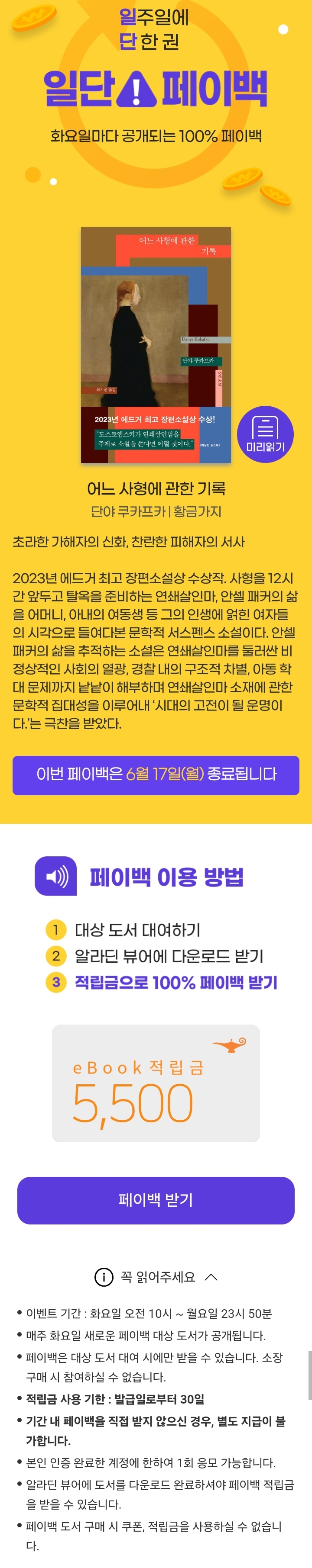 일주일에 단 한 권 화요일마다 공개되는 100% 페이백