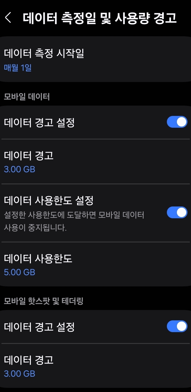 삼성 갤럭시 스마트폰 개선희망점: 데이터 사용량 경고, 한도 설정이 잘 풀리는 문제 본문