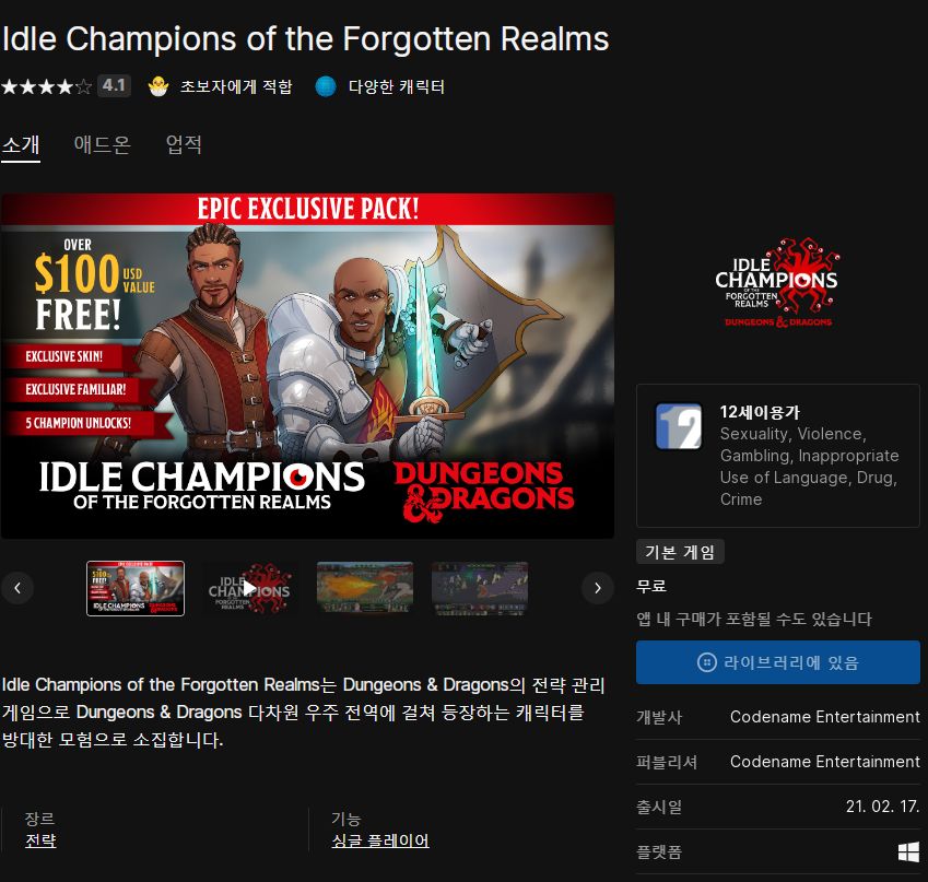 (에픽게임즈 무료게임) Idle Champions of the Forgotten Realms 본문