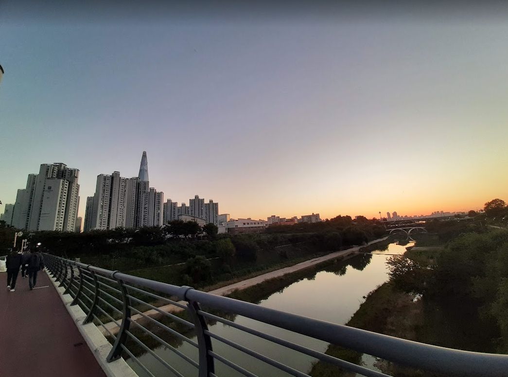 잠실나루역에서 서울아산병원까지 걸어서 오가는 길입니다.