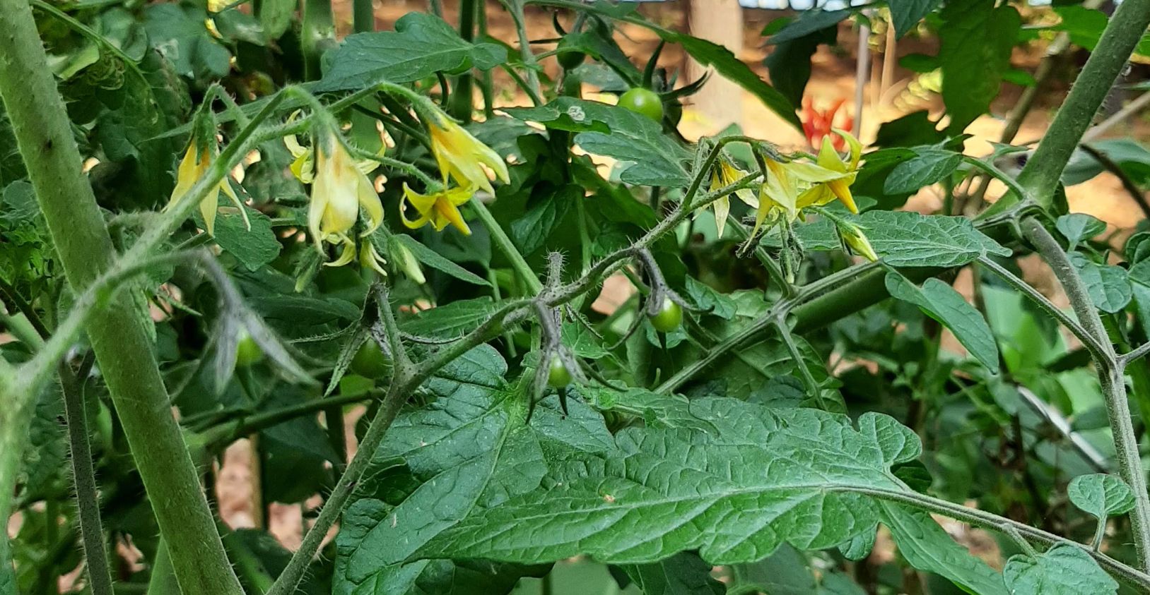 아직 피는 토마토꽃과 늦은 열매