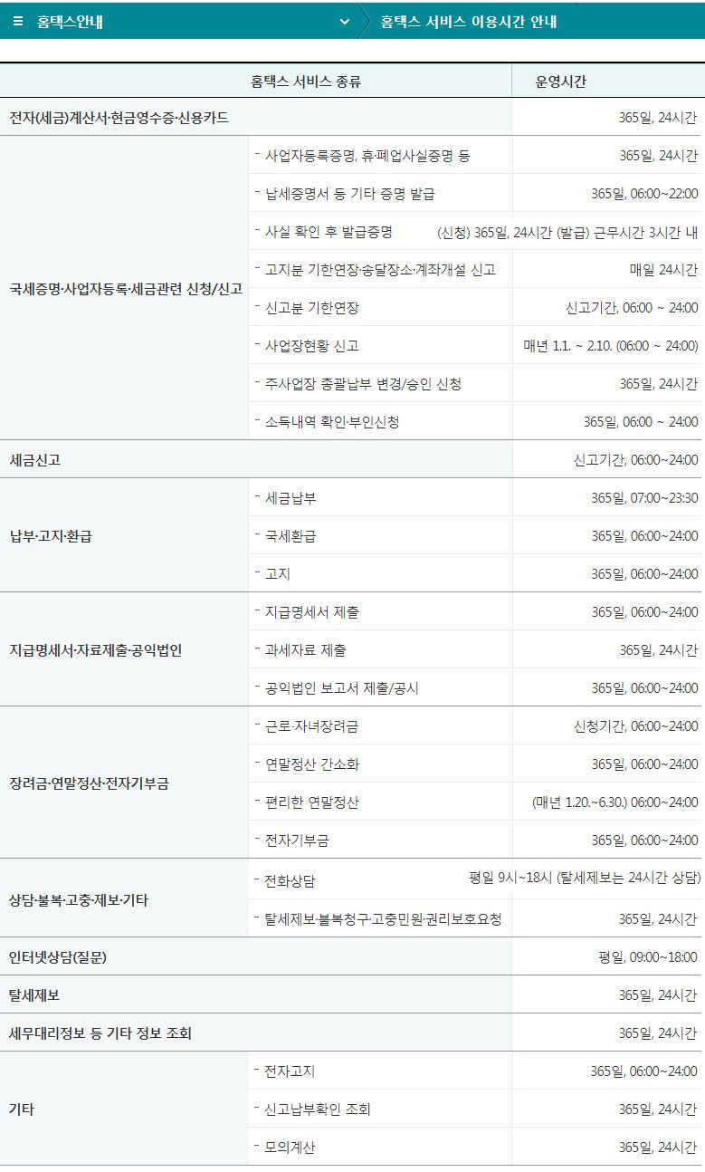 국세청 홈택스, 서비스 이용시간 (2024.6.) 본문