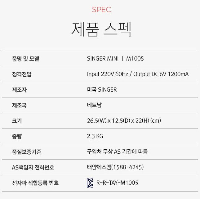 미니미싱 중, 싱거 미니(SINGER MINI) 제품정보 조금 찾아본 것 본문
