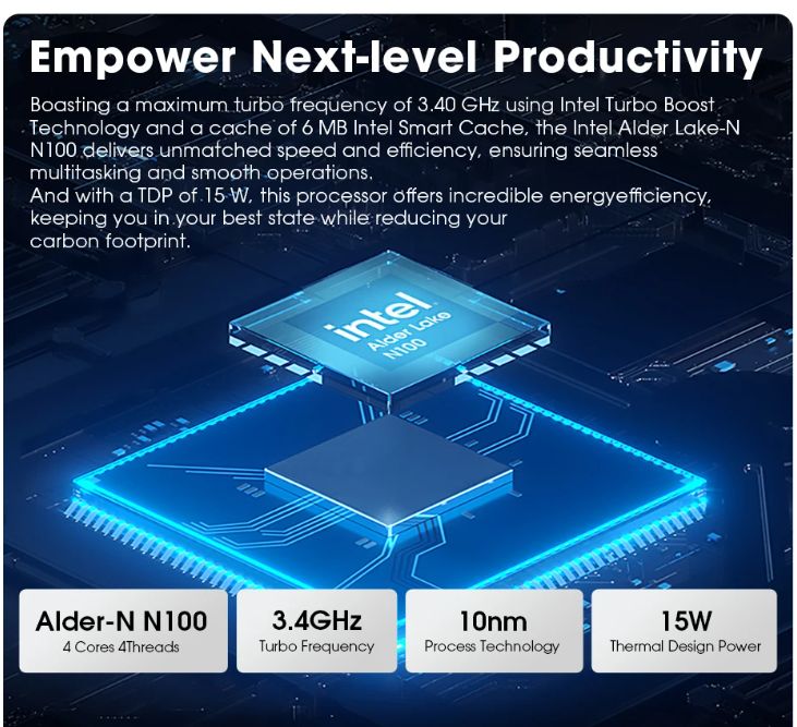 Intel Alder Lake N100 (4코어 4스레드, 3.4GHz, 내장그래픽)