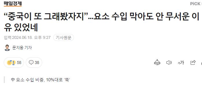 중국에서 요소수줄기를 쥐고 흔드는 짓을 걸핏하면 하려 드니,