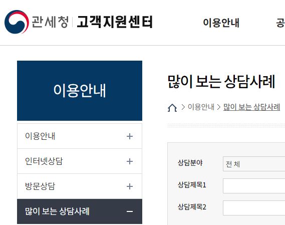 https://www.customs.go.kr/call/ad/crmcc/selectIssueList.do?mi=6828
