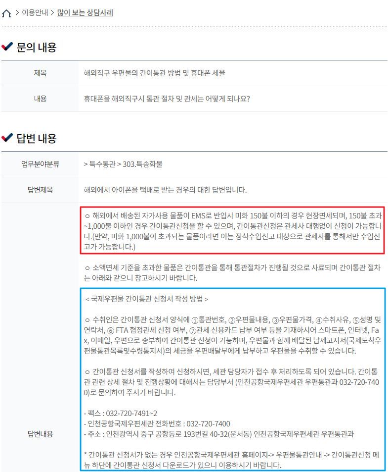 해외직구 우편물의 간이통관 방법 및 휴대폰 세율 (해외직구한 아이폰같은 스마트폰을 택배로 받는 경우 등)