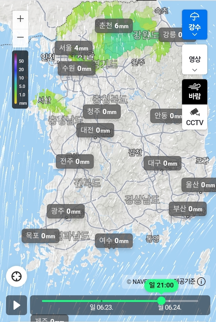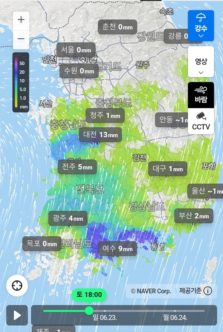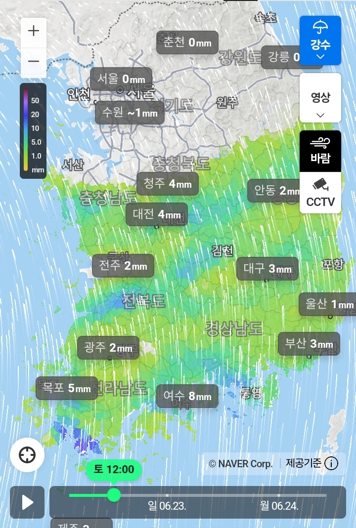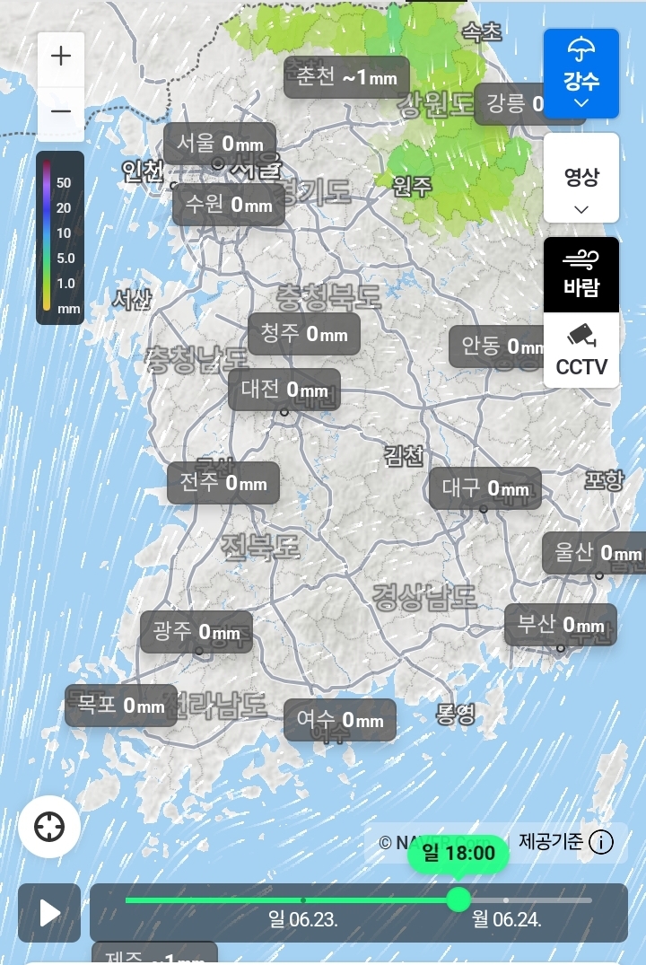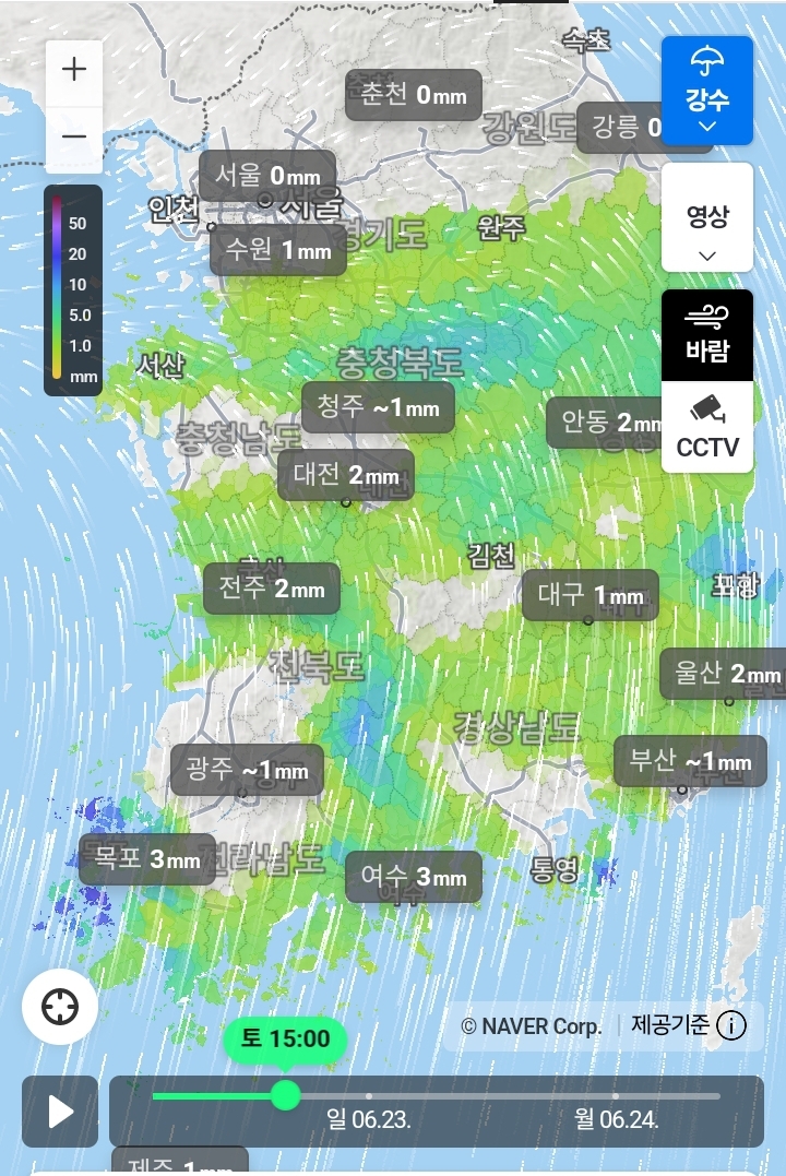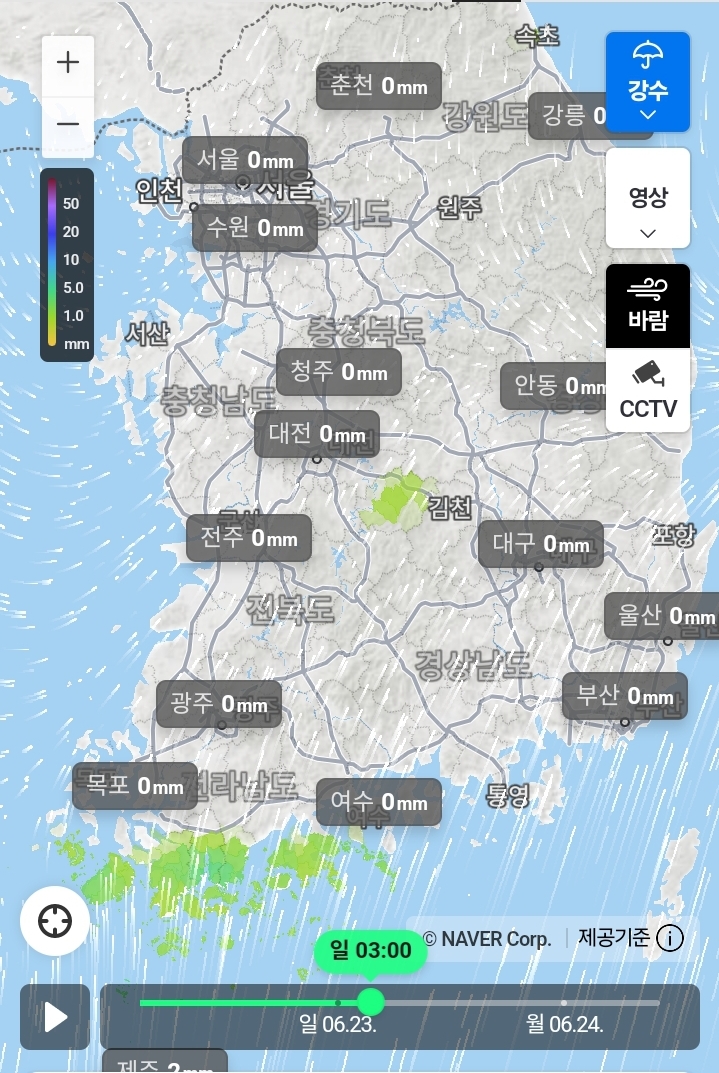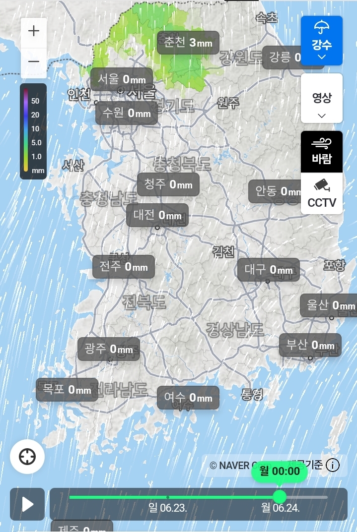 2024.6.22(토)-6.24(월)새벽까지의 전국 비 지도 본문