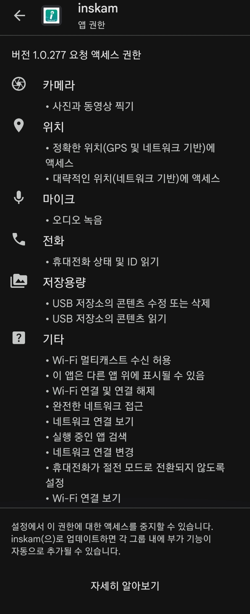 (낮은 버전 안드로이드OS에서는 물어보지 않고 가져가버리니 주의)