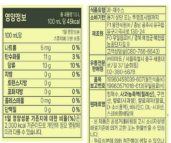 * 노브랜드의 사과주스 중에는 착즙했다는 것도 있는데 아마 살균했겠죠. 1L짜리 가정용인 만큼 100ml 파우치로 파는 것보다는 가성비가 있습니다. 살균이든 생과즙이든 100%에 맛들이면 델몬트 190ml 5%, 10%과즙음료는 눈이 안 가죠. 편의성은 좋지만. :)