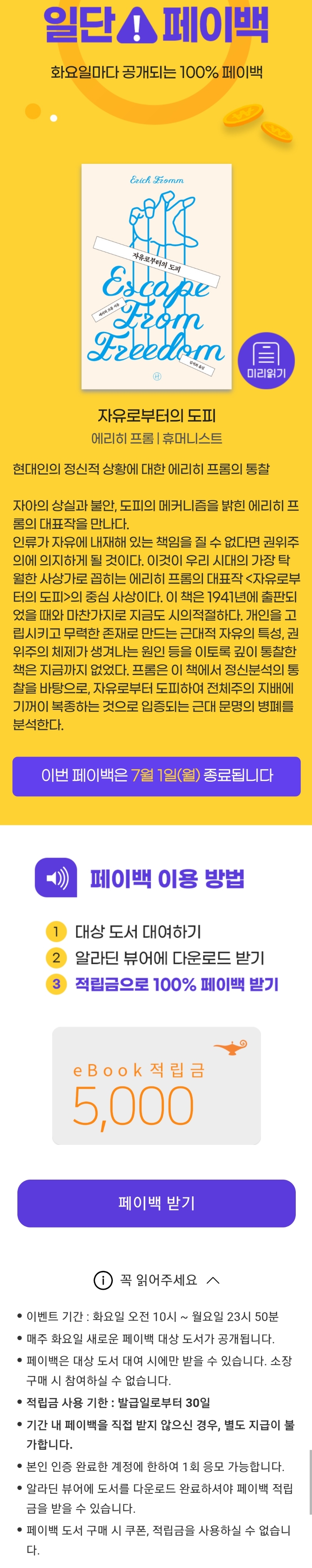 매주 화요일 100% 돌려드려요, 일단 페이백 자유로부터의 도피