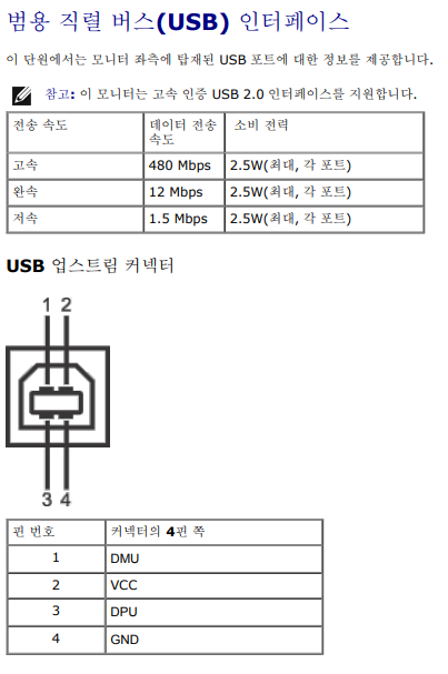이 모니터는 USB A-A선을 받아서 2포트를 내줍니다.
