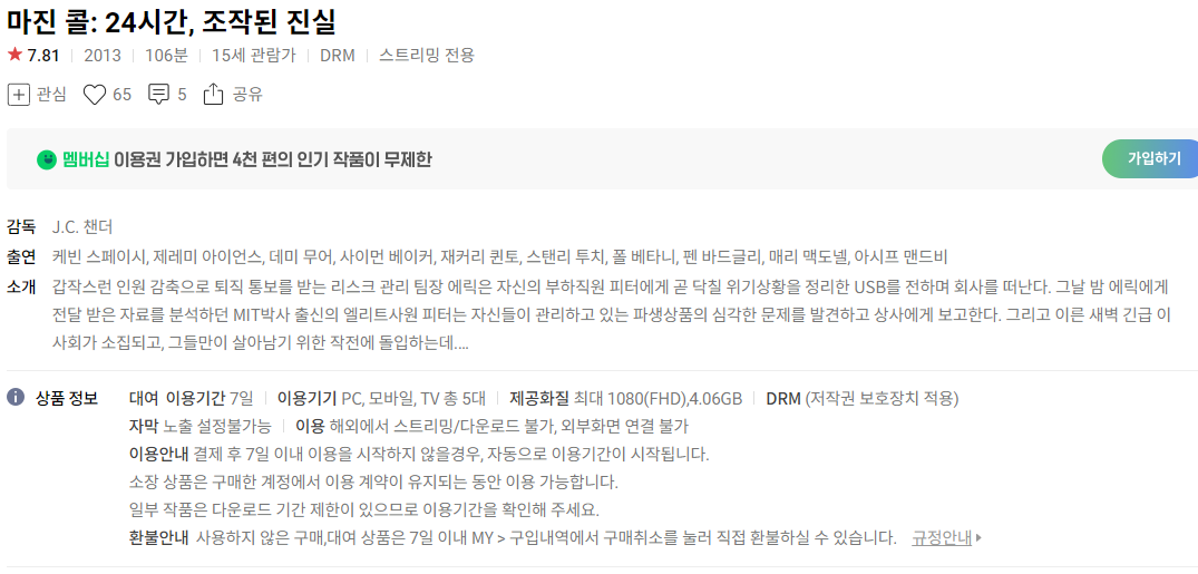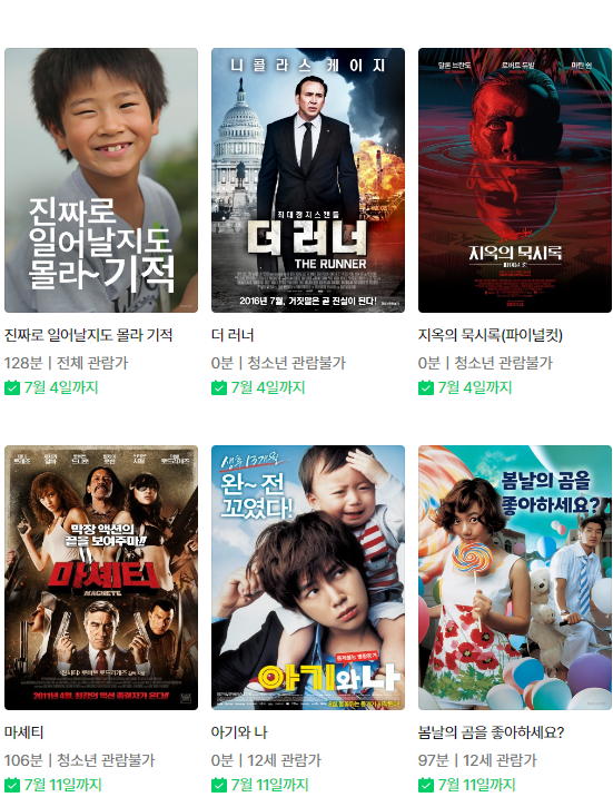 | (네이버시리즈온 무료영화) 마진 콜:24시간,조작된 진실, 테스, 송어, 아기와 나, 봄날의 곰을 좋아하세요?, 더 게임, 눈물이 주룩주룩, 파이란 등 (0) | 2024.07.05 |