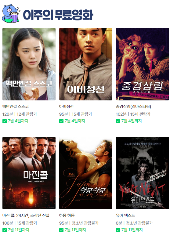 (네이버시리즈온 무료영화) 마진콜, 중경삼림, 아비정전, 아기와 나, 봄날의 곰을 좋아하세요? 등 본문