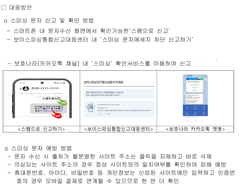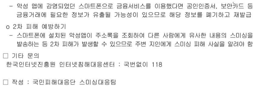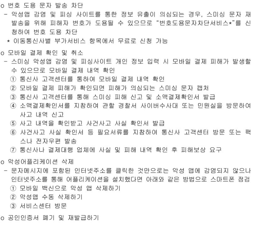 내용 중 스미싱 문자 예방 방법이라는 부분에서 생각할 게 있었습니다.