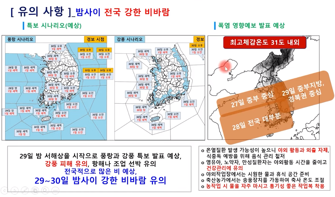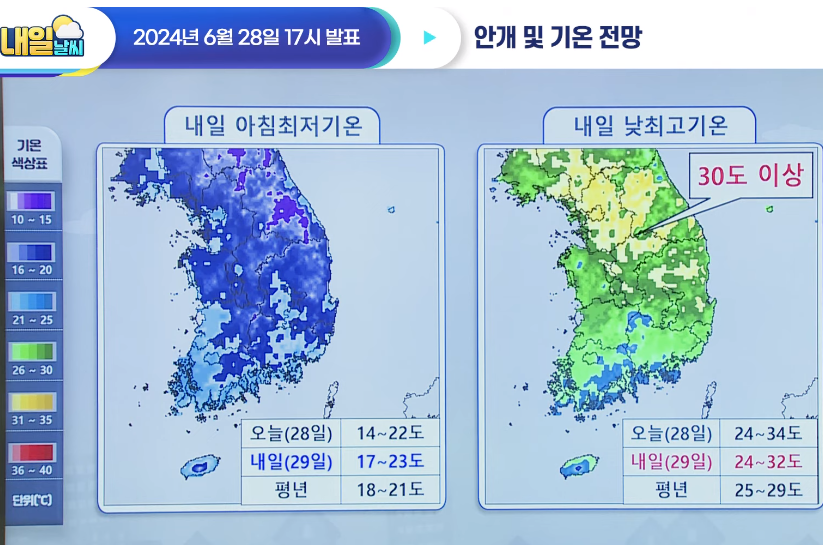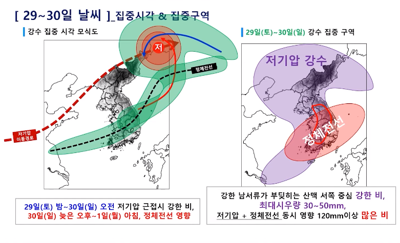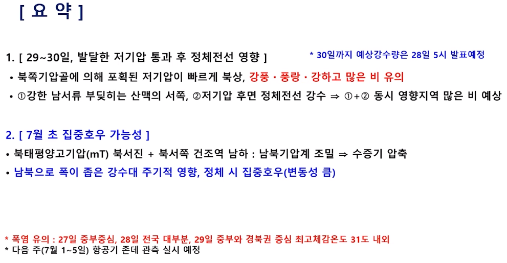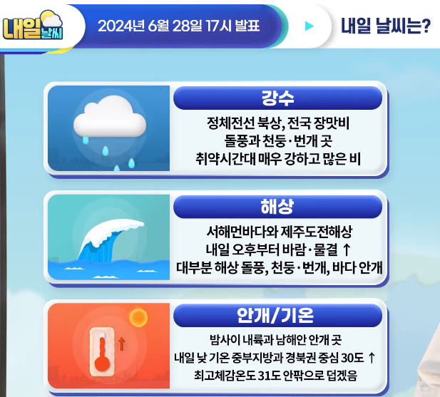 토요일 밤부터 강한 장맛비 주의! 전국 본격 장마철! (2024년 6월 27일 기상청 예보브리핑)