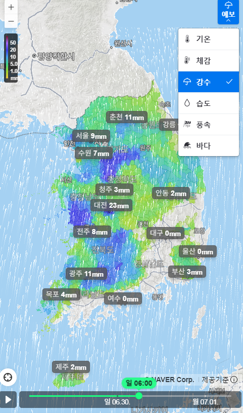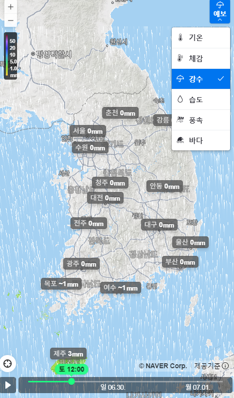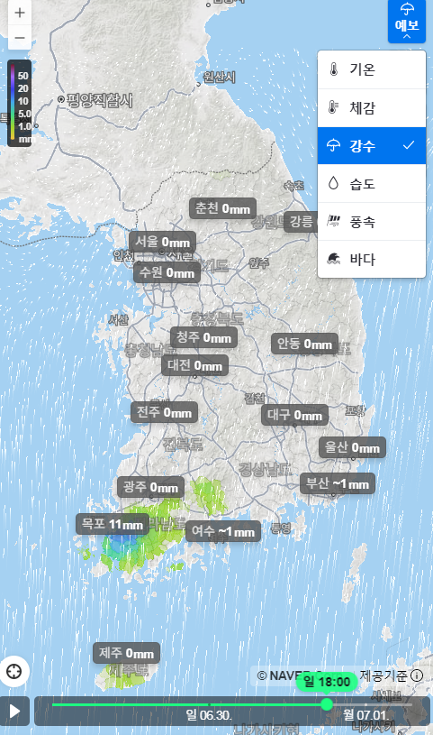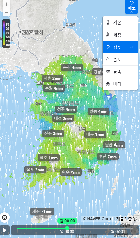 네이버날씨, 주말 전국 비 지도