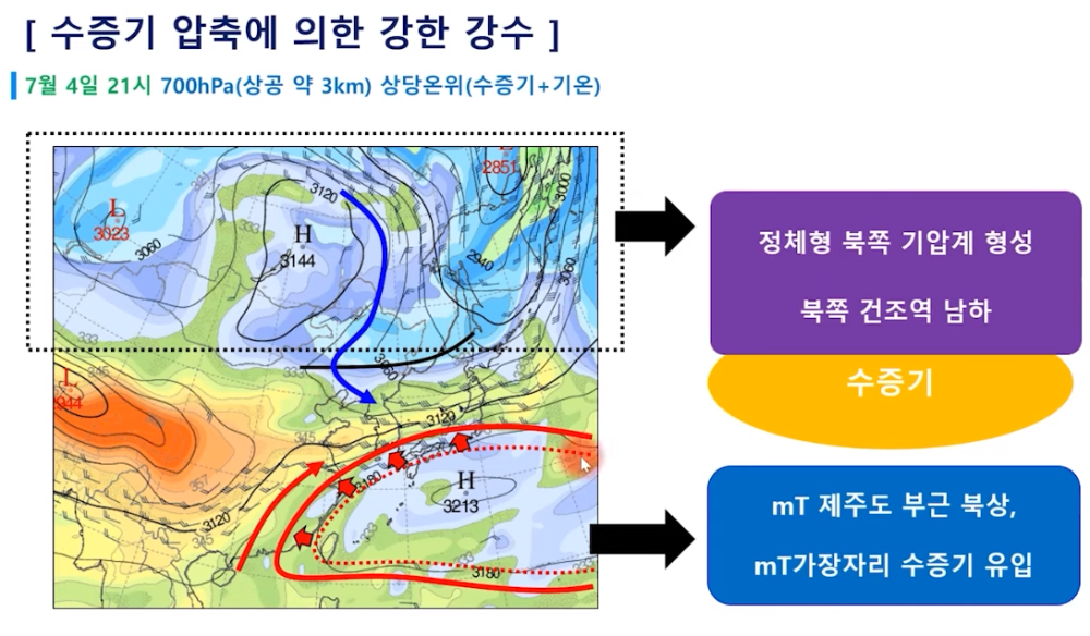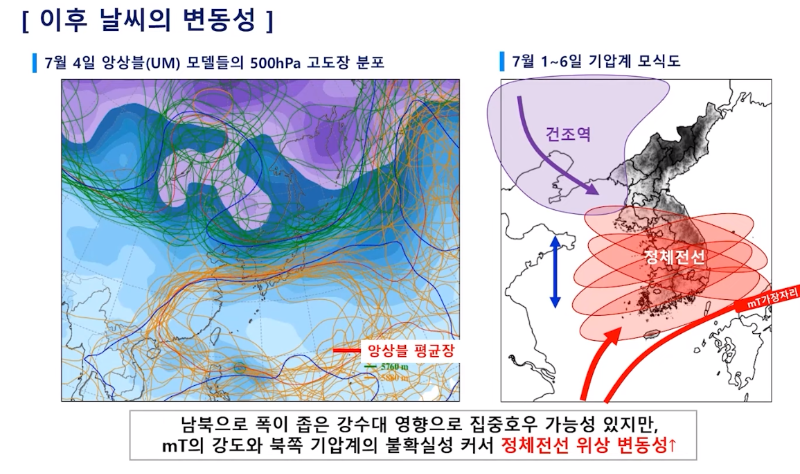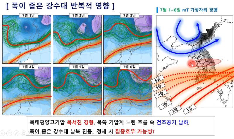 결국, 한반도 위, 특히 중부지방 상공에 비가 아주 많이 내리는 구름대가 형성돼 피해가 클 수 있다는 말같습니다.