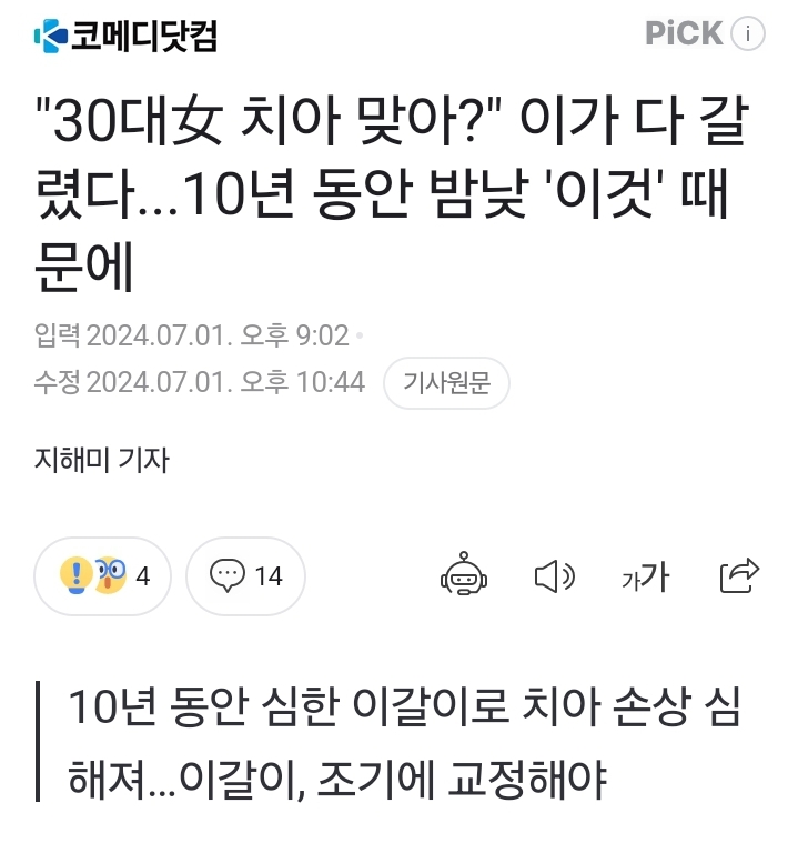 "30대女 치아 맞아?" 이가 다 갈렸다...10년 동안 밤낮 '이것' 때문에
