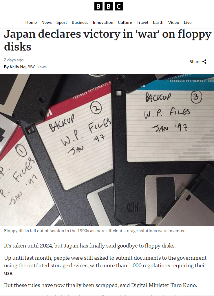 Japan's government finally says goodbye to floppy disks