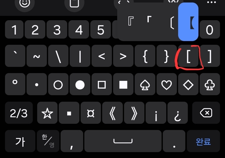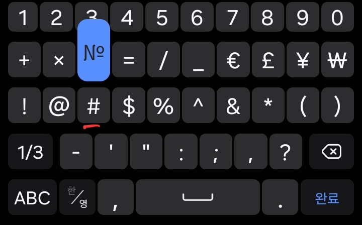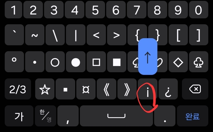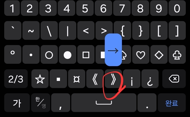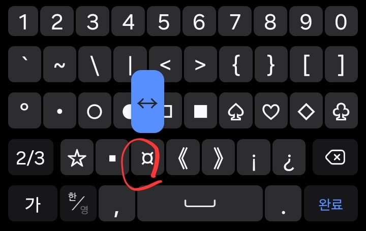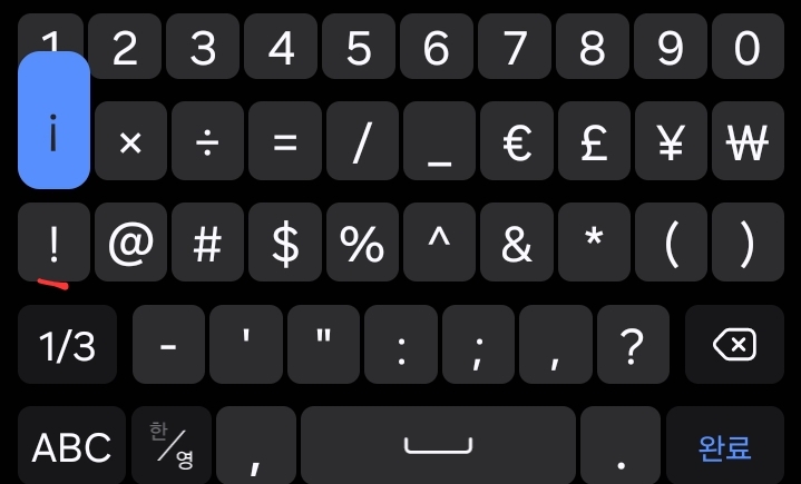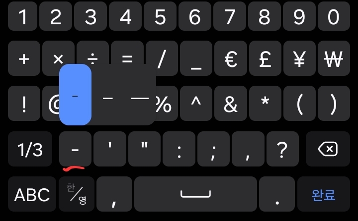 특수문자키보드에서 자판을 길게 누르면