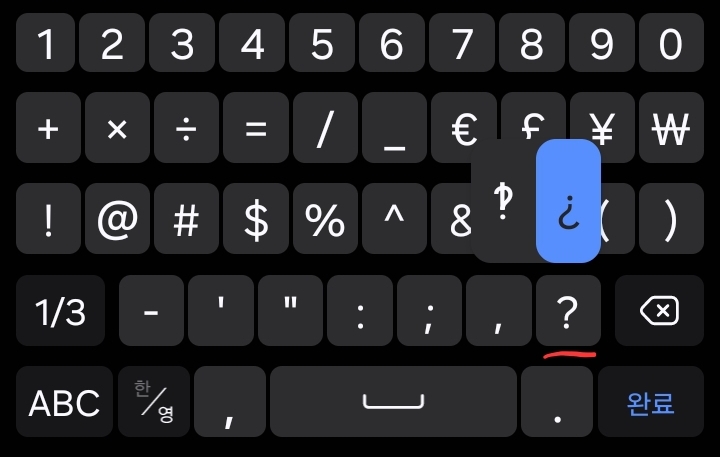 화면 키보드 자판을 길게 누르면 입력되는 키.